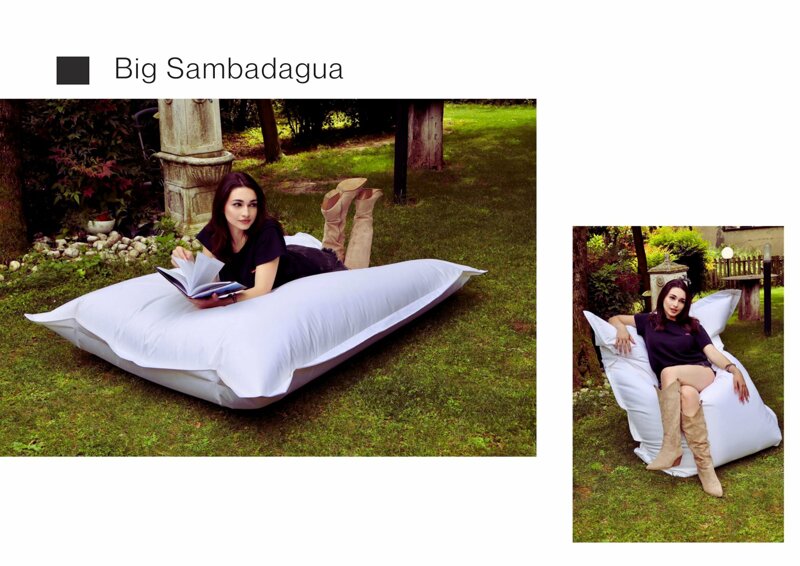 Il cuscinone Big Sambadà e' un prodotto estremamente versatile. Lo si puo' utilizzare in posizione sdraiata,in posizizione verticale come comoda poltrona oppure posizionato su un lato diventa una comoda relax.